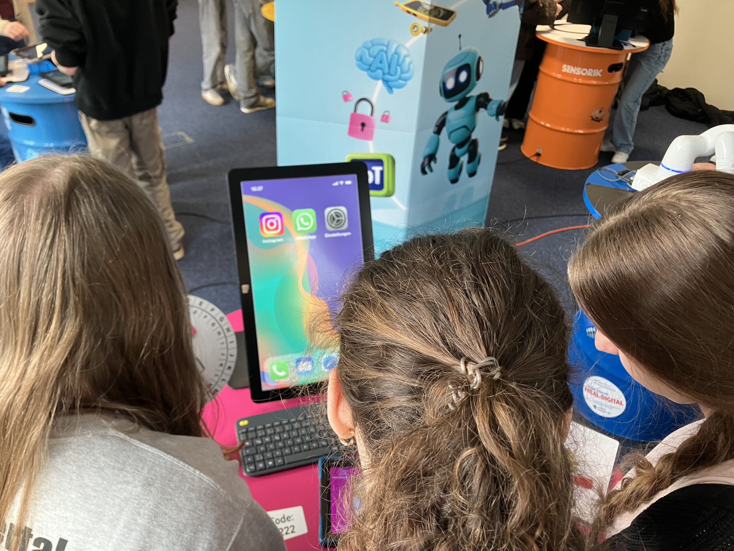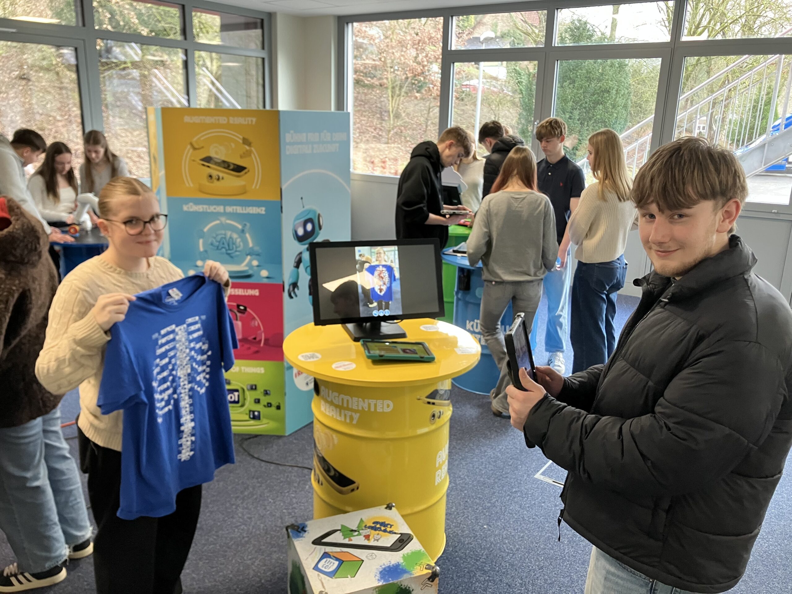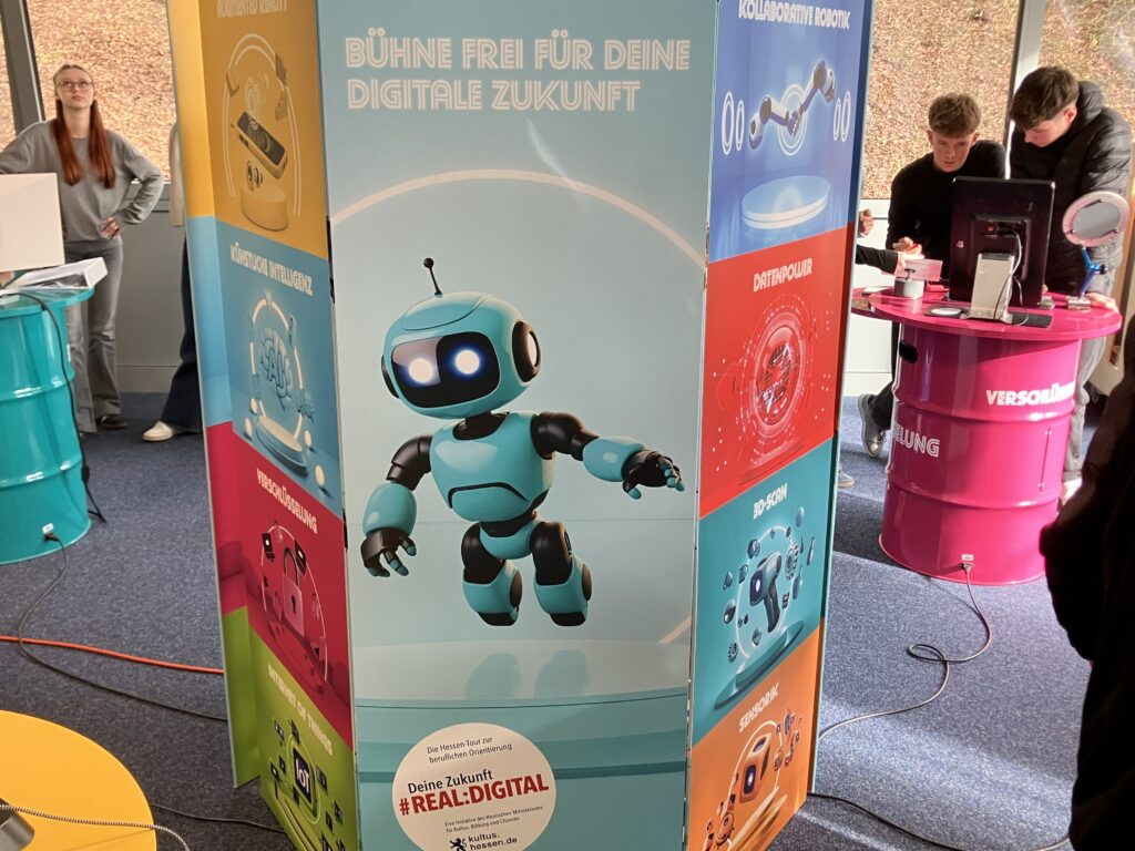 Schülerinnen und Schüler der Klassen 8-10 lernen auf einer Erlebnisausstellung spielerisch, wie künstliche Intelligenz, Robotik und der Umgang mit digitalen Daten ihren künftigen Berufsalltag verändern.